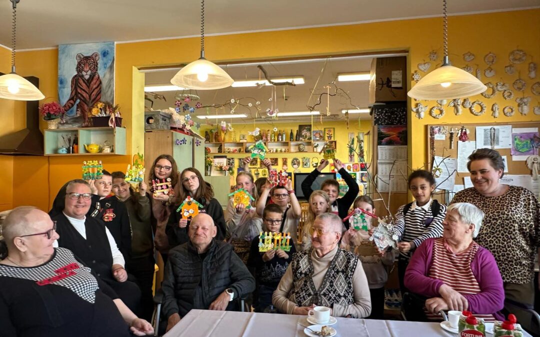 3 kwietnia chwilę przed świętami dzieci ze świetlicy „Źródełko” odwiedziły naszych zaprzyjaźnionych seniorów z Domu Pomocy Społeczne przy ulicy Mącznej. Wspólne spotkanie było pełne radości, rozmów i wzruszeń. Razem tworzyliśmy świąteczne ozdoby, dzieliliśmy się ciepłem i uśmiechem przy poczęstunku. To kolejne piękne spotkanie pokoleń, które przypomina, jak ważna jest obecność i serdeczność – szczególnie w okresie świątecznym.