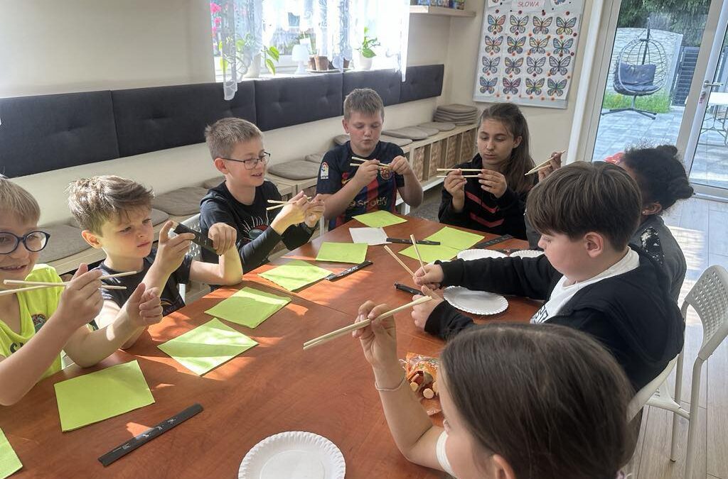 11 czerwca z okazji Dnia Sushi w naszym Centrum odbyły się wyjątkowe zajęcia, które przeniosły dzieci w kulinarną podróż do Japonii. Na początku przeprowadziliśmy wspólną rozmowę na temat tego dania. Następnie dzieci miały okazję nauczyć się posługiwać pałeczkami, co sprawiło im mnóstwo radości i wywołało sporo śmiechu. Dla wielu była to zupełnie nowa umiejętność, którą opanowywali z dużym zaangażowaniem. Na zakończenie zajęć odbyła się degustacja sushi. Dzieci mogły spróbować różnych rodzajów tej japońskiej potrawy, poznać jej składniki i odkryć nowe smaki. Zajęcia nie tylko wzbogaciły wiedzę uczniów o kulturze Japonii, ale również pozwoliły im rozwinąć umiejętności manualne i kulinarne w przyjaznej atmosferze.