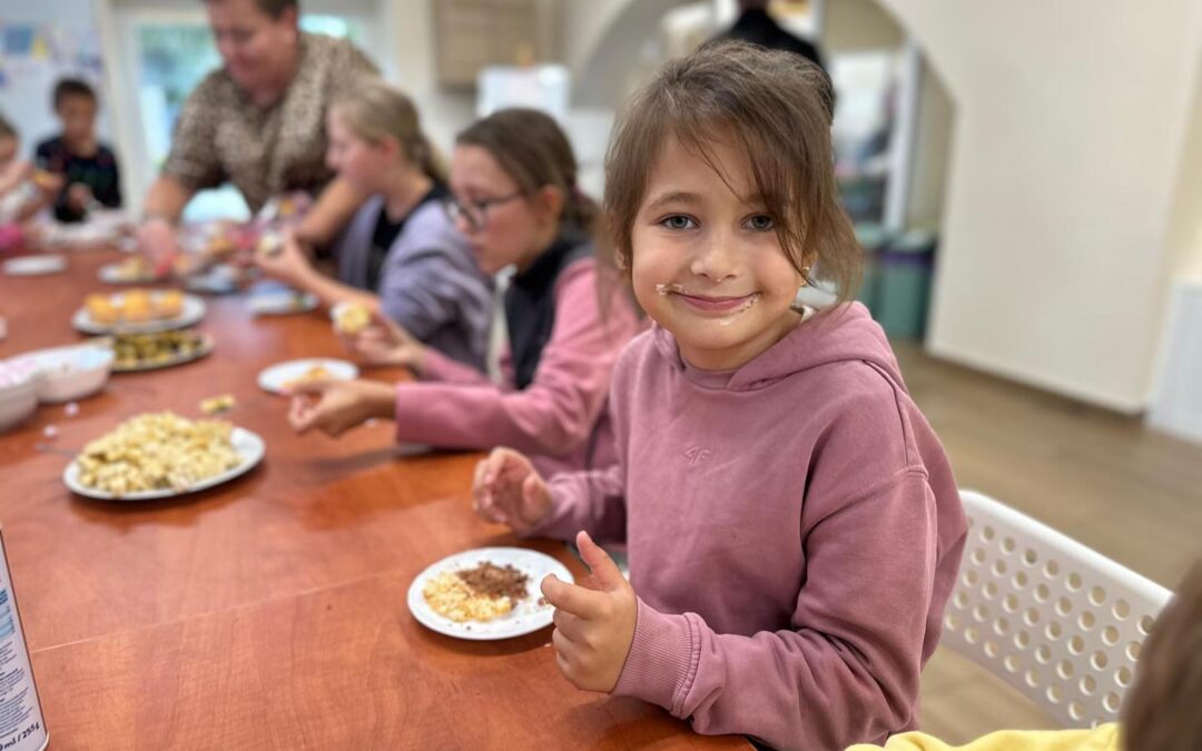 W poniedziałek w naszym Centrum dzieci miały okazję wcielić się w małych cukierników. Każde dziecko otrzymało swoją babeczkę, którą mogło własnoręcznie ozdobić. Do dyspozycji były różnokolorowe lukry, posypki, czekoladowe groszki, żelki i inne owocowe dekoracje. Najpierw dzieci obejrzały przygotowane przykłady ozdobionych babeczek, a następnie puściły wodze fantazji i stworzyły swoje własne, niepowtarzalne projekty. Było przy tym mnóstwo radości, rozmów i śmiechu. Niektórzy tworzyli kwiatki i uśmiechnięte buźki, inni wymyślne wzorki i kolorowe kompozycje. Zajęcia pozwoliły dzieciom rozwijać kreatywność, zdolności manualne, a także dały wiele satysfakcji z efektów pracy. Na zakończenie każdy mógł z dumą zaprezentować swoją babeczkę i oczywiście spróbować własnego słodkiego dzieła.
