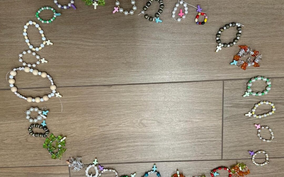 Podczas czwartkowych zajęć sensorycznych w „Źródełku” dzieci wykonywały własnoręcznie różańce metodą DIY. Każdy uczestnik mógł stworzyć swój różaniec, korzystając z kolorowych koralików, sznurka i małego krzyżyka. Dzieci z wielkim zaangażowaniem nawlekały koraliki, ucząc się jednocześnie cierpliwości i dokładności. Na zakończenie każdy miał wyjątkową pamiątkę różaniec przygotowany własnymi rękami, który może towarzyszyć im w modlitwie lub pozostać jako szczególny symbol spotkania w „Źródełku”. Zajęcia sprawiły dzieciom wiele radości i satysfakcji.